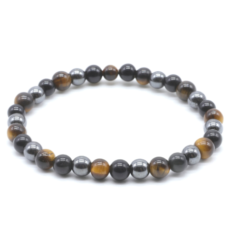 • Pulsera de protección de obsidiana negra, hematita y ojo de tigre 6 mm