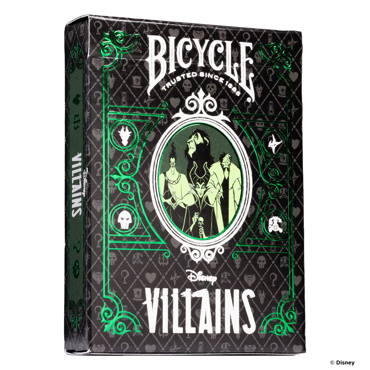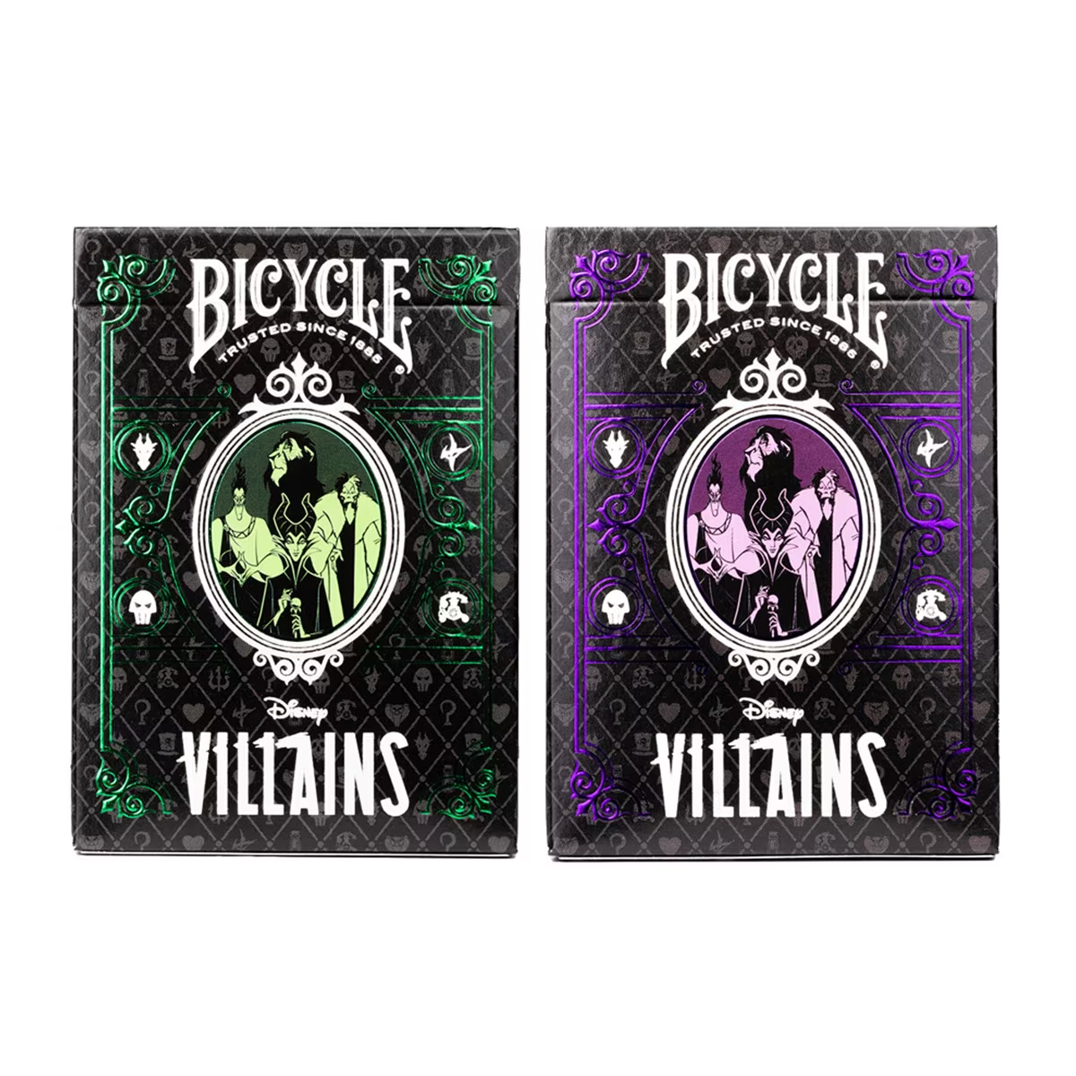 Adéntrate en el lado más oscuro de Disney con la Baraja de Cartas Villanos Disney de Bicycle. Esta increíble baraja rinde homenaje a los villanos más icónicos de Disney con ilustraciones personalizadas y un diseño único que captura su esencia maléfica.