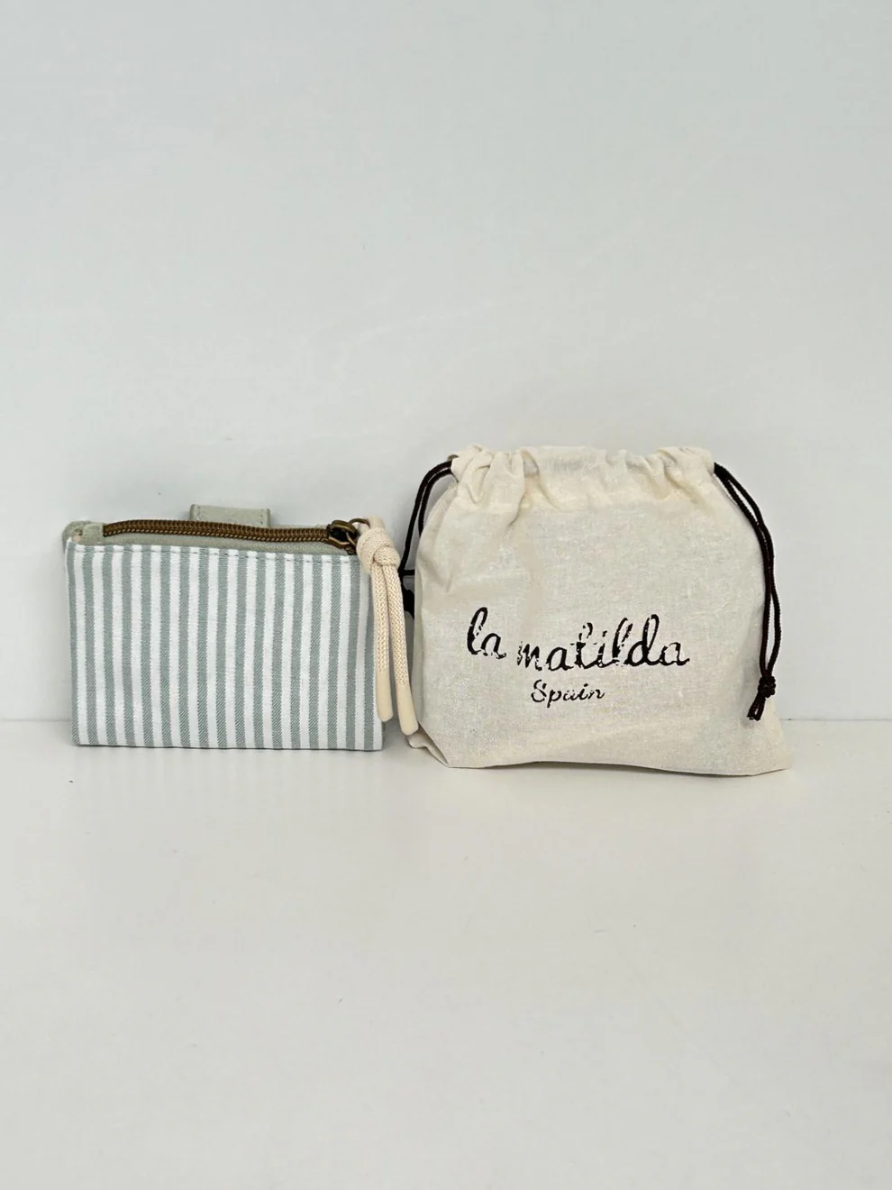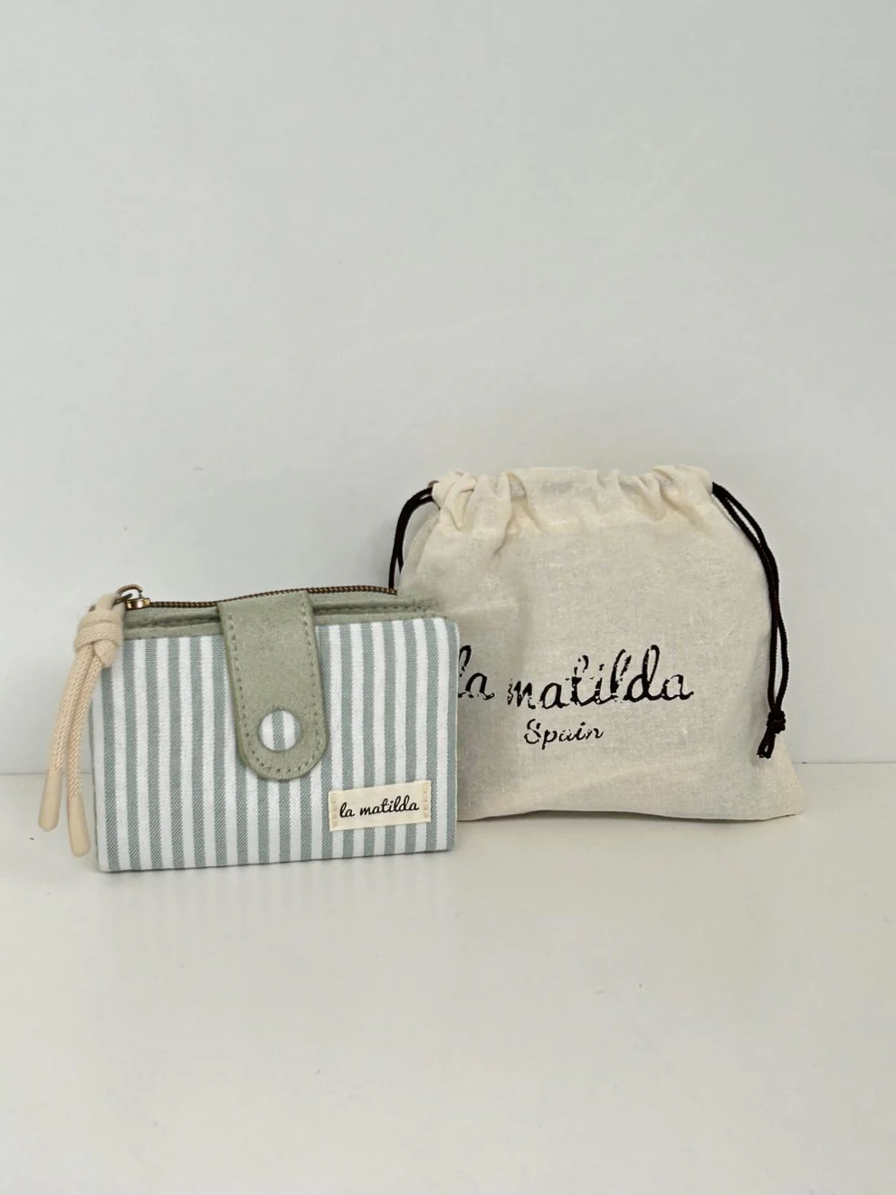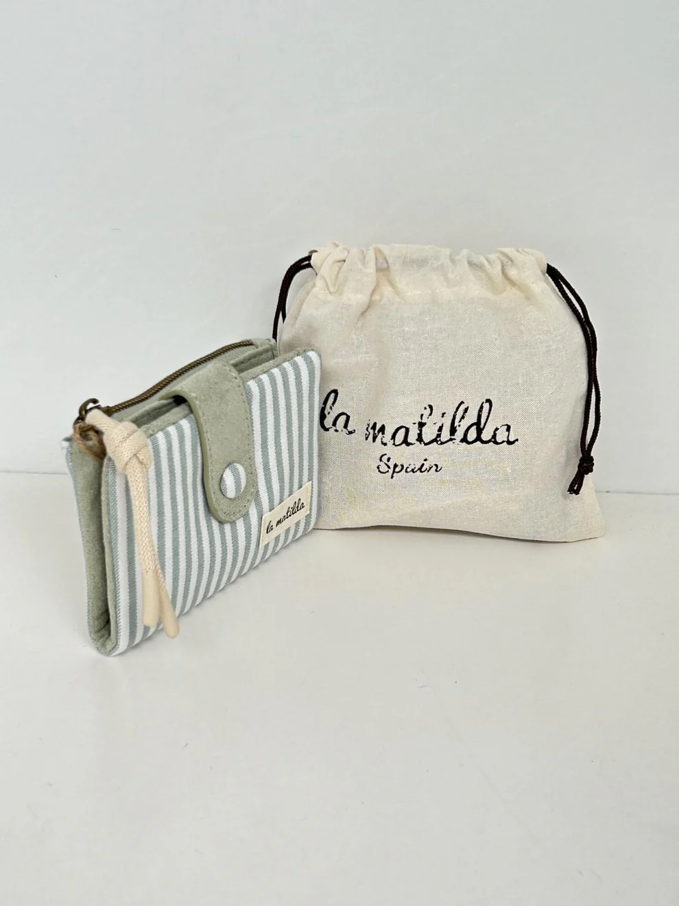 De forma rectangular y tamaño compacto, esta cartera de la matilda es ideal para llevar lo esencial siempre organizado. Su cierre de cremallera superior, acompañado por un tirador de tela anudado, aporta un detalle distintivo y funcional.